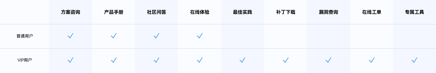 VIP服務(wù)是達(dá)夢數(shù)據(jù)在線服務(wù)平臺(tái)為特定用戶提供的專屬服務(wù),不僅可暢享基礎(chǔ)服務(wù)權(quán)益,更能通過VIP通道實(shí)現(xiàn)在線工單響應(yīng)、專屬知識(shí)庫、版本更新、漏洞說明、智能運(yùn)維工具等核心特權(quán),尊享原廠級(jí)技術(shù)護(hù)航新體驗(yàn)。